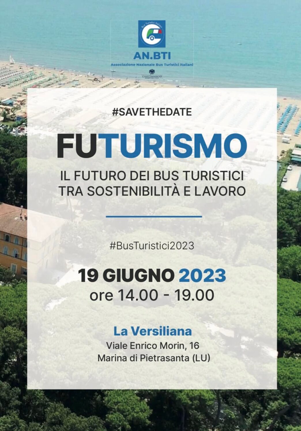 “L’Associazione Nazionale Bus Turistici Italiani AN.BTI – ConfCommercio sarà protagonista oggi 19 giugno dalle ore 14.00 alle ore 18.30 del convegno: ‘FUTURISMO: IL FUTURO DEI BUS TURISTICI TRA SOSTENIBILITÀ E LAVORO’ nella splendida location de ‘La Versiliana’ (Marina di Pietrasanta – LUCCA). Sarà un’occasione per fare il punto sullo stato del settore dopo un triennio davvero difficile, caratterizzato da oltre 2 anni di fermo totale a causa della pandemia e dagli stravolgimenti conseguenti allo scoppio della guerra in Ucraina. AN.BTI – ConfCommercio, attraverso le parole del Presidente Riccardo Verona e con il contributo di diversi prestigiosi interventi racconterà la situazione, le esigenze e le ambizioni del comparto dei bus turistici. Tante le tematiche sul piatto: necessità di rendere strutturale il taglio delle accise, disparità di trattamento con altri settori del trasporto, inserimento dei bus turistici nel settore turismo e mille altri ostacoli, in primis la carenza di autisti: mancano al settore circa 7.500 conducenti.